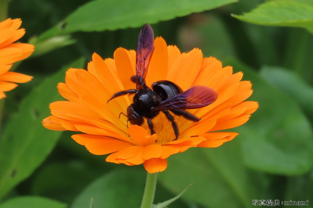 花の蜜 幼虫は親から花粉だんごをもらって食べる。 |