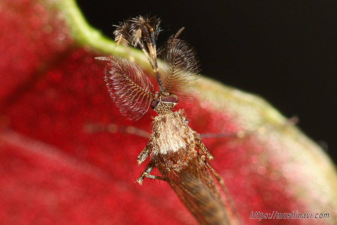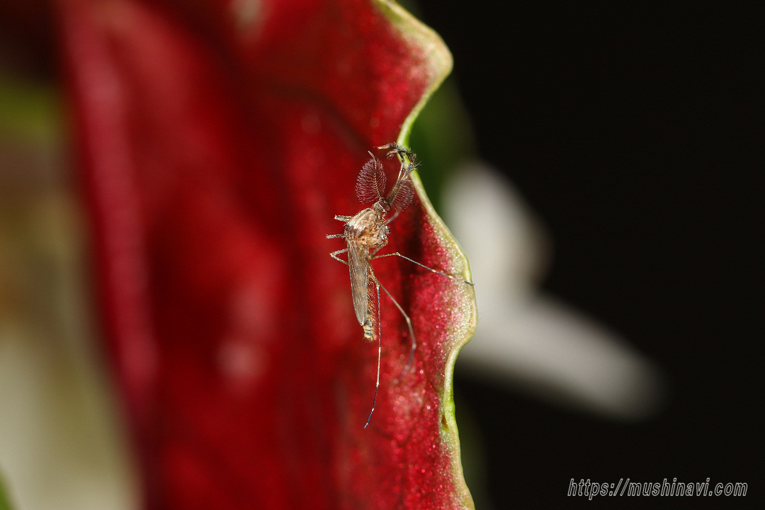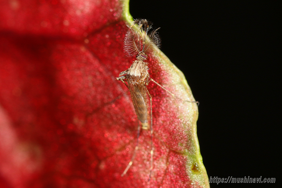 カクイカの一種。 体色は褐色で淡黄色の毛を生やす。腹部は淡褐色と暗褐色の縞模様。 小顎肢は非常に長く、先端付近は毛深い。 雄の触角は大きく発達した羽毛状、♀ではほぼ糸状。 成虫は鳥類吸血性、幼虫はボウフラを食べる。 蚊の幼虫(ボウフラ)を食べることからカクイカ(蚊食い蚊)と呼ばれている。