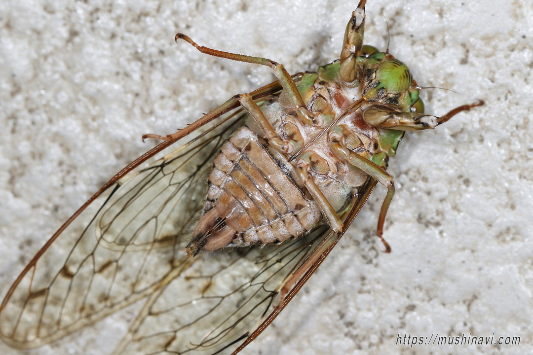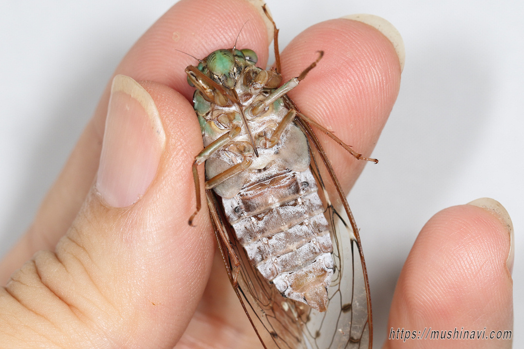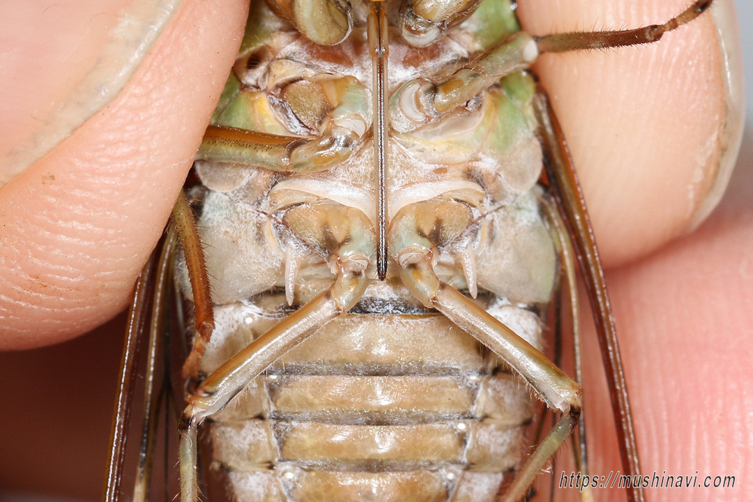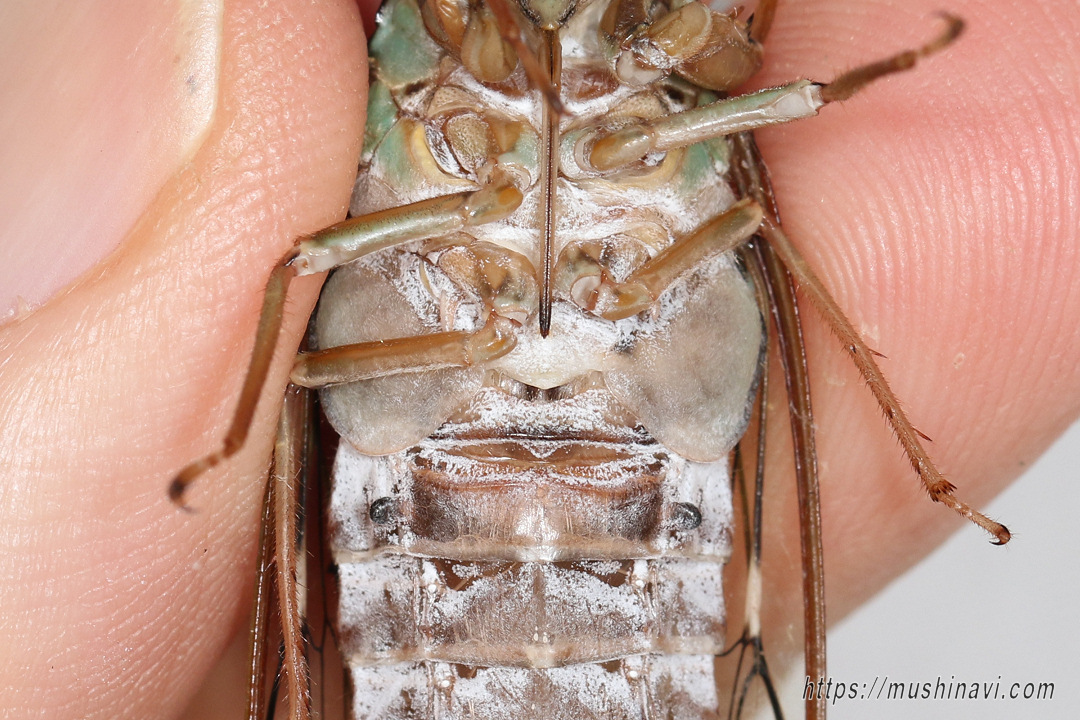 ![]() ♂の腹面 腹弁が大きい。 体型は細長い。 (2025.8.3) |