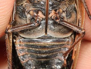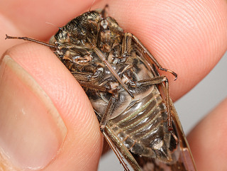 ![]() ♀の腹面 腹弁が小さい。 (2025.7.9) |