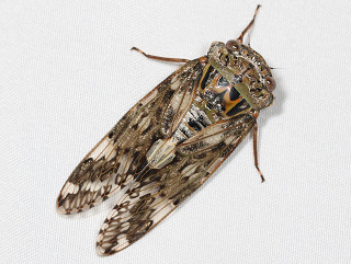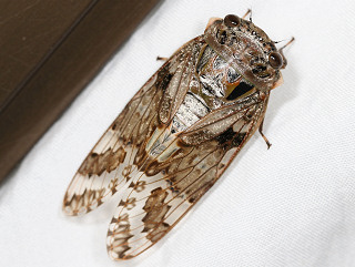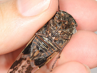 ![]() 鳴いている最中の♂ 腹部を活発に伸縮して鳴いていた。 (2006.8.14) |